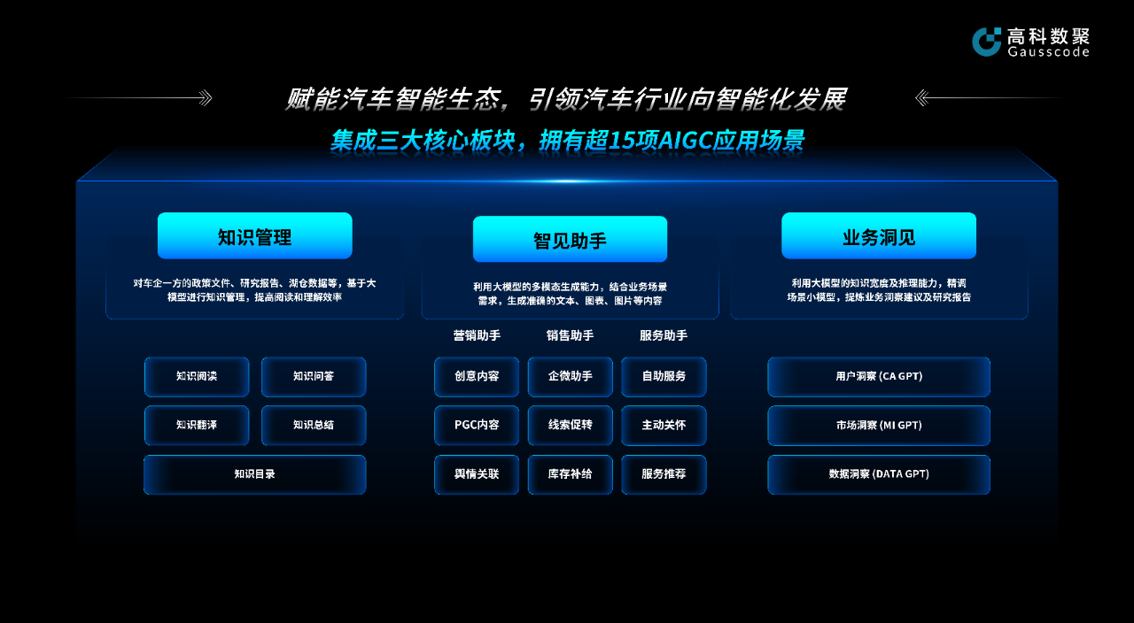 不朽情缘 作为一家以业务场景知识图谱、大数据模型和人工智能算法为核心能力的科技公司,凭借敏捷创新应用——车智见,脱颖而出。车智见聚焦车企知识管理、智见助手与业务洞见三大核心需求,实现服务由月级到小时级的跨越。同时,基于数据能力,和行业经验将大语言模型调优为汽车行业市场需求定制的领域模型,已成功落地15个业务场景。有效助力车企在市场洞察、客户服务等方面的转型升级。
